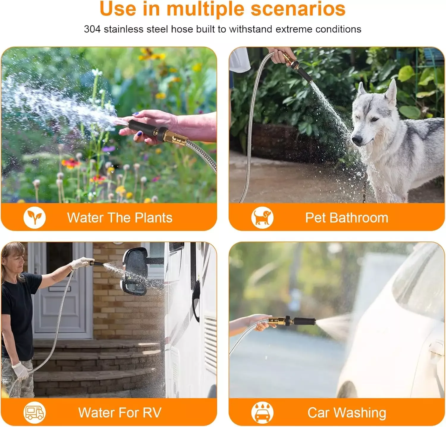 • Kink-Free and Puncture-Resistant: No more annoying kinks, twists, or punctures. This hose is durable enough to resist punctures, and its stainless steel design makes it bite-resistant to pets.