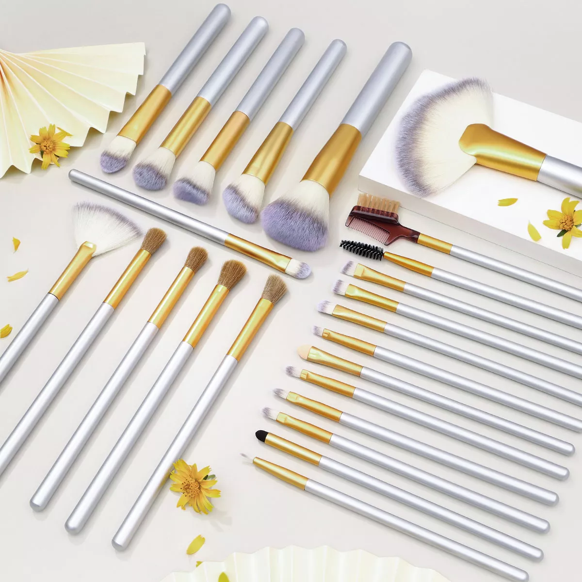 - 24-Piece Complete Brush Collection: Includes every essential brush for face, eyes, and lips, covering all makeup application needs.