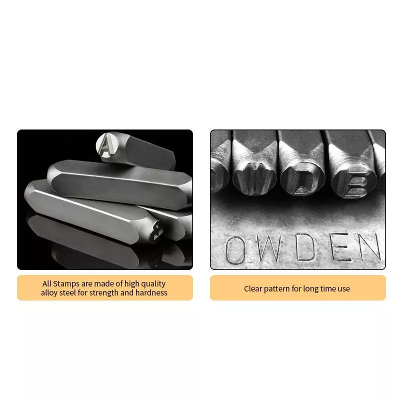 • Comes with 36 high-quality steel stamps: includes 26 letters (A-Z), 9 numbers (0-8), and a versatile ampersand (&)