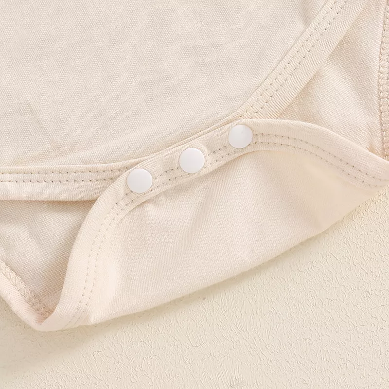 Crafted from a premium blend of cotton and elastane, the fabric is breathable and gentle on your baby’s sensitive skin. The thoughtful design guarantees a comfortable fit without sacrificing style. Whether you’re dressing up for family gatherings or capturing unforgettable moments, this outfit delivers effortless charm.