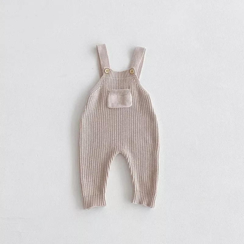 Be the first to review “Baby Girls and Boys Sleeveless Knitted Overalls Romper with Front Pocket”