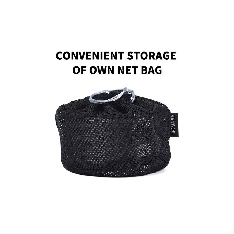 Designed with convenience in mind, this outdoor cooking set features a space-saving folding handle, making it easy to store in your backpack or camping gear. Weighing only 10.2 oz (0.8L), it is lightweight yet sturdy, perfect for campers and hikers who need efficient, portable cookware. The included protective mesh bag ensures safe storage and easy transport.