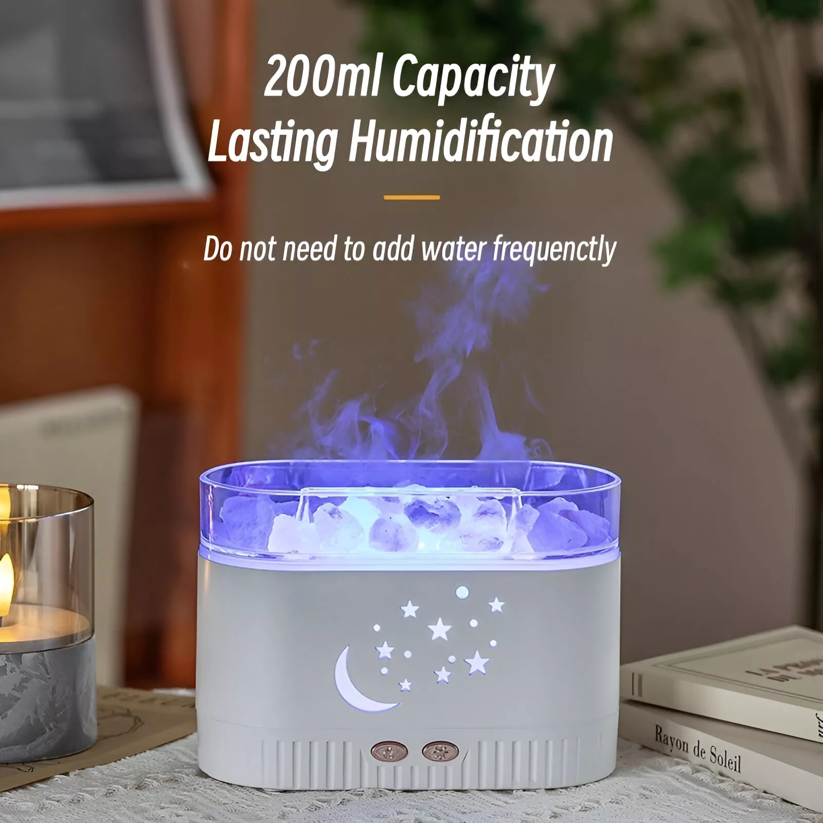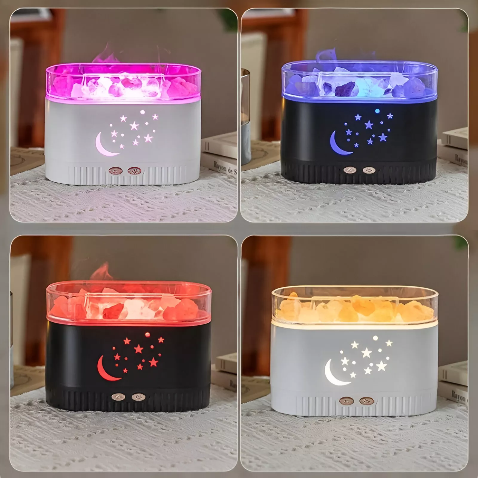 - Multi-Function Design: Combines a crystal salt stone, fire flame effect, and ultrasonic humidification in one compact unit.