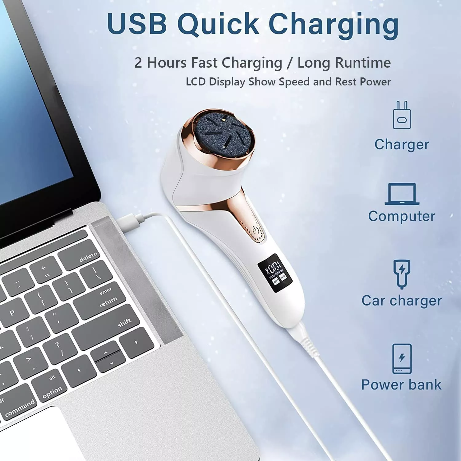 - Rechargeable Convenience: Powered by a 1200mAh lithium battery, this foot grinder offers up to 100 minutes of continuous use with a quick 2.5-hour charge. Easily recharge using your car charger, computer, or power bank.