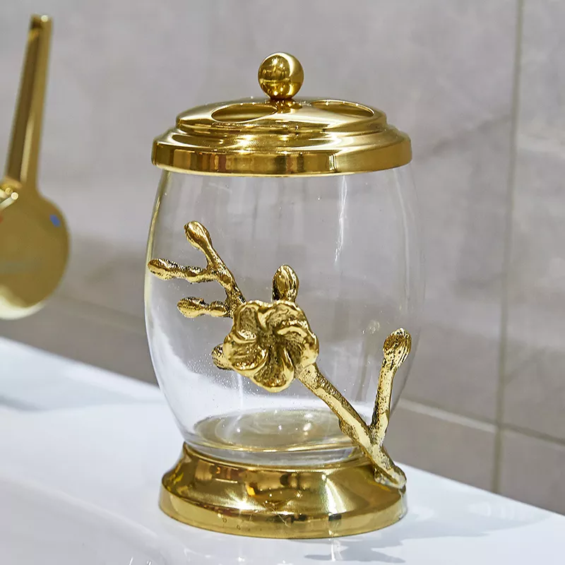What truly sets this bathroom set apart is its exceptional blend of style and function. Each item is thoughtfully designed to offer both visual appeal and practicality. The **pure copper lotion bottle** not only looks stunning but is also easy to use, while the **toothbrush holder** and **cotton swab box** provide tidy storage for everyday essentials. The **round mirror tray** elevates the entire set by adding a reflective surface that complements the other pieces, creating a cohesive, polished look. Whether you use it to organize your bathroom or display it as a decorative feature, this set brings a touch of luxury to any space.