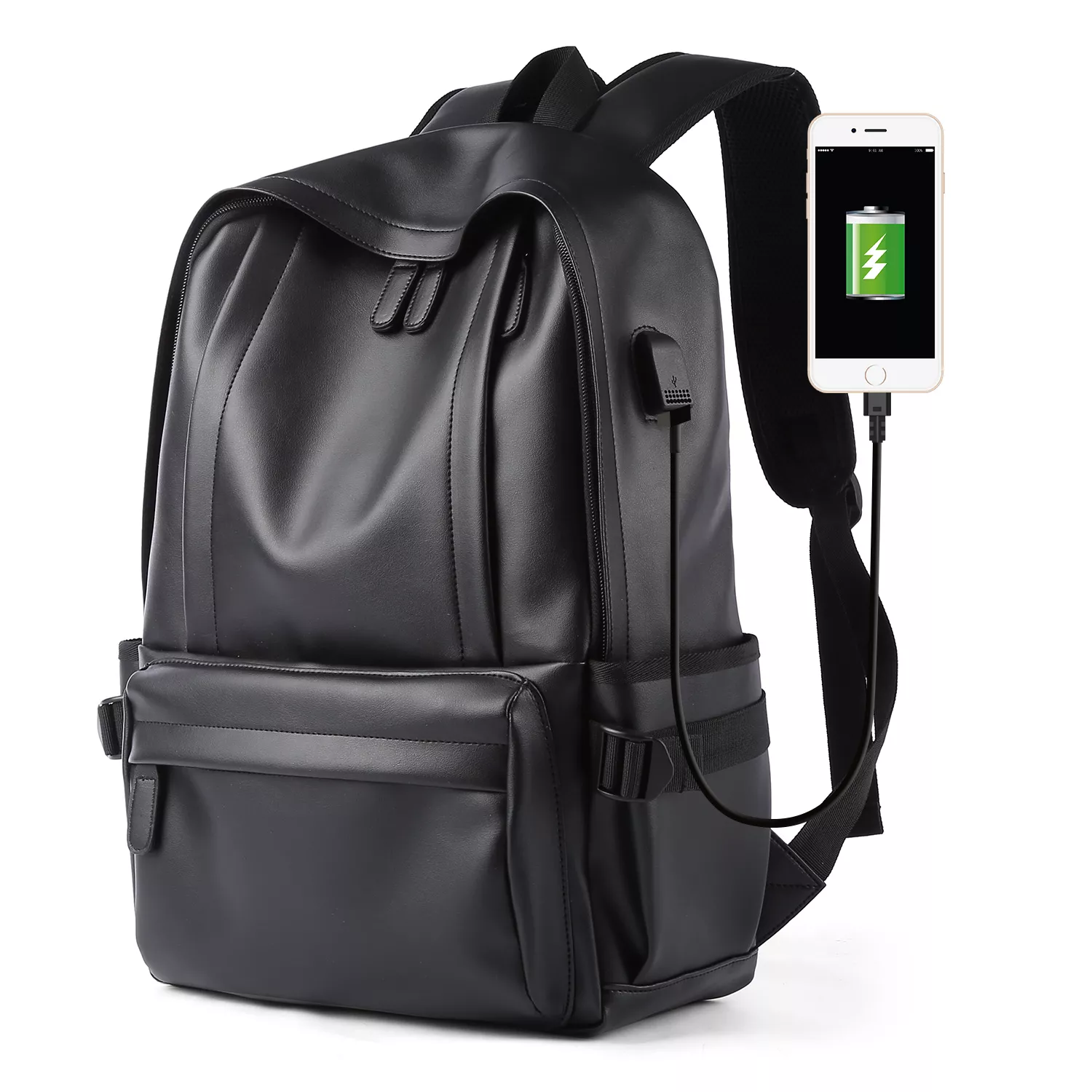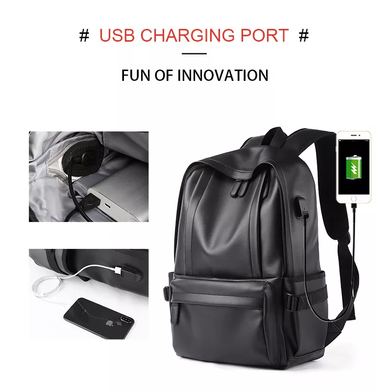 Fashionable Waterproof Leather Backpack with USB & 14-Inch Laptop Compartment