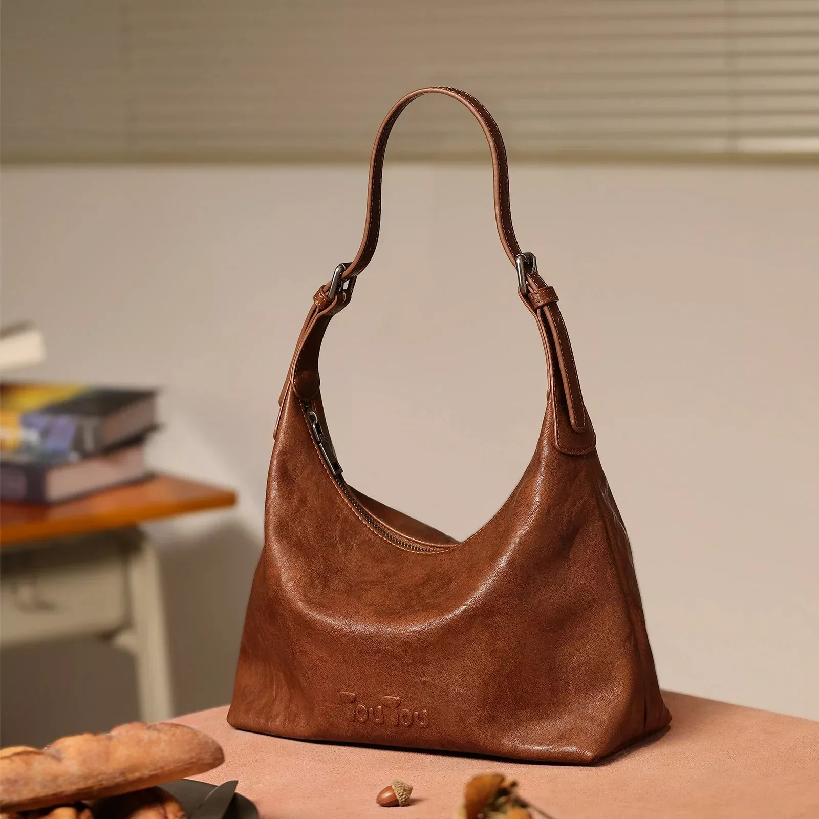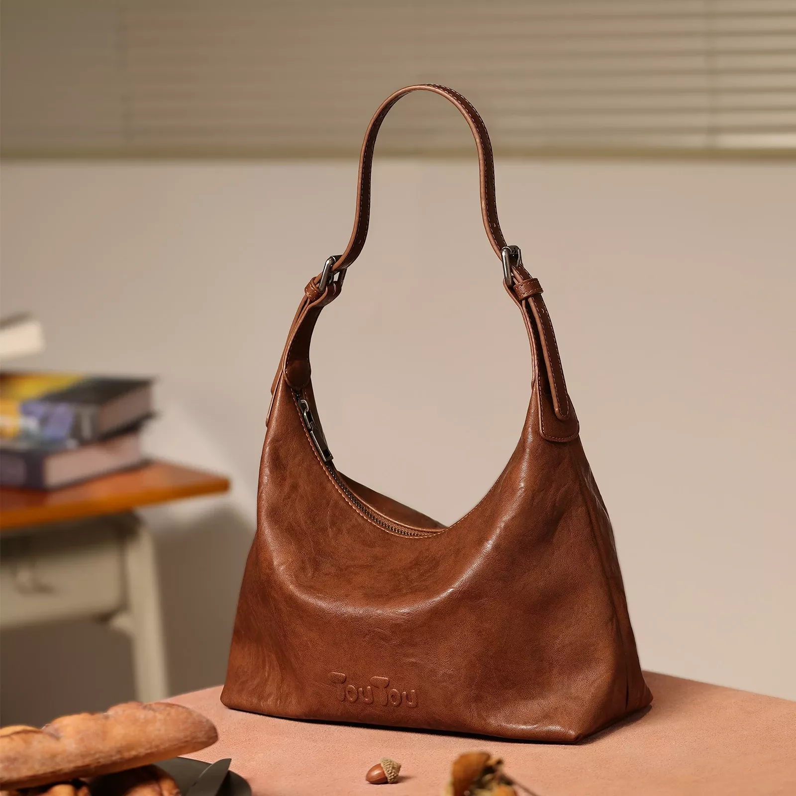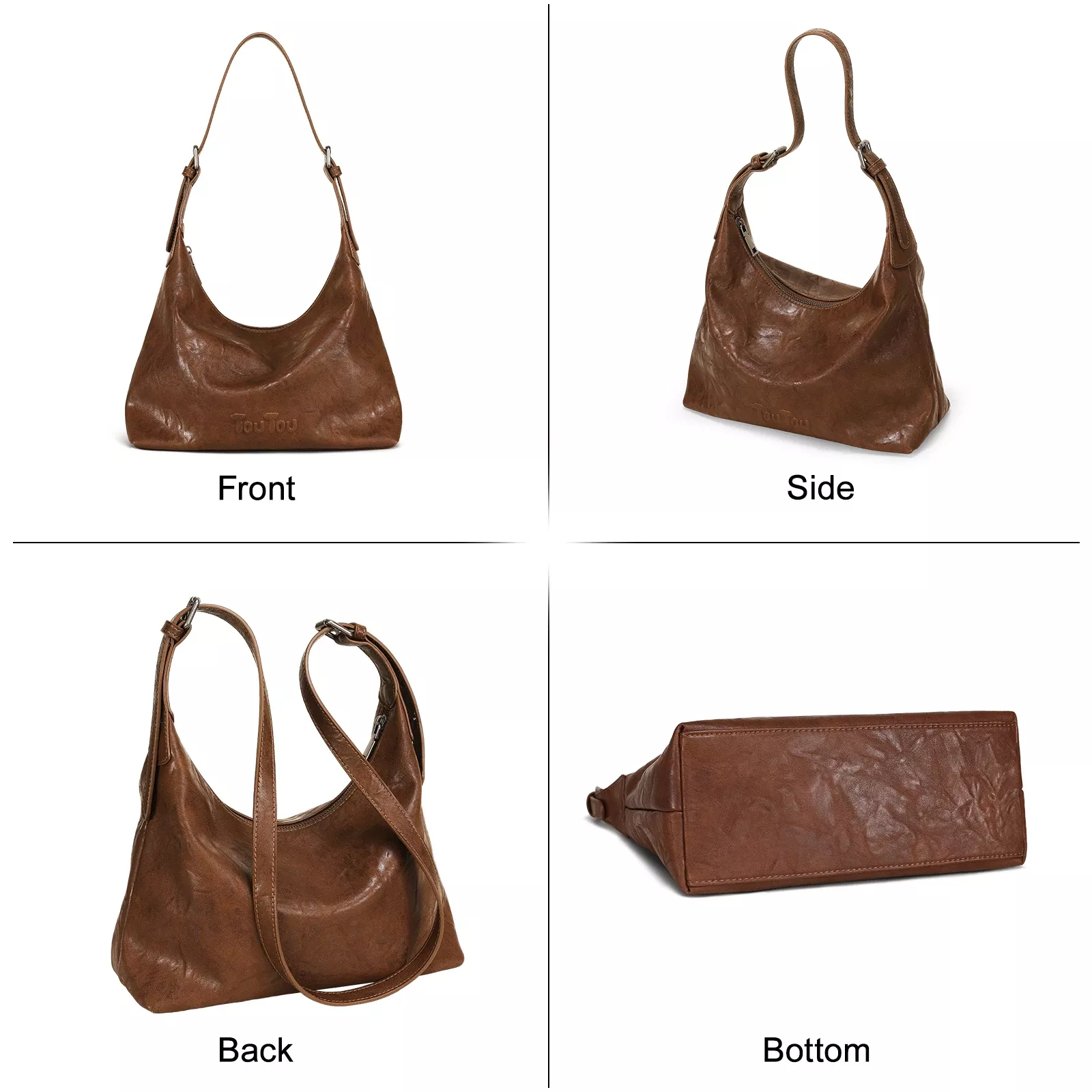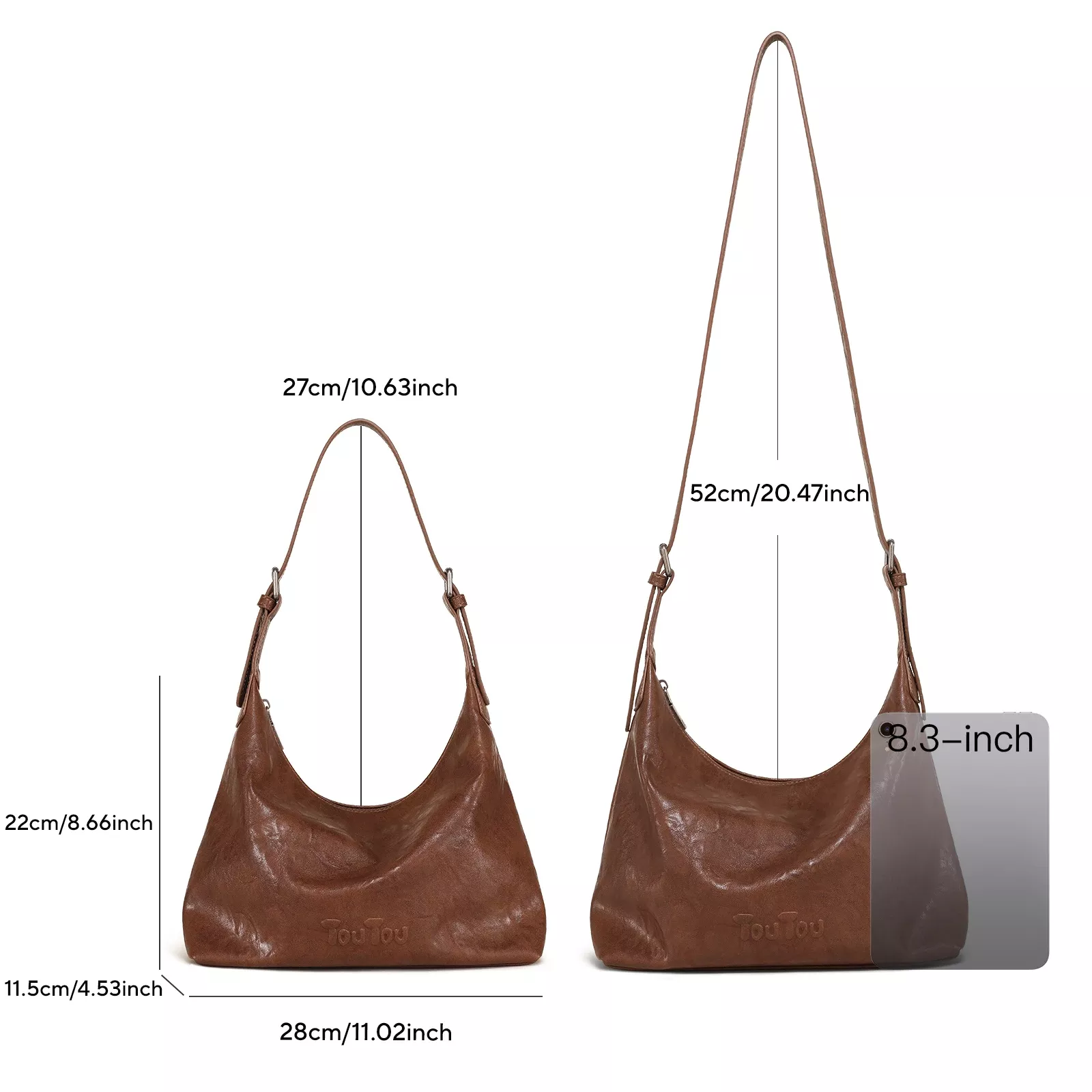 The classic vintage brown and black color combination adds an elegant touch, making it suitable for any occasion, from casual outings to more polished affairs. Its soft and flexible construction ensures a comfortable fit under the arm, while the structured shape keeps your items neatly organized. The practical zipper closure ensures the security of your belongings, while the spacious interior offers plenty of room for everything you need.