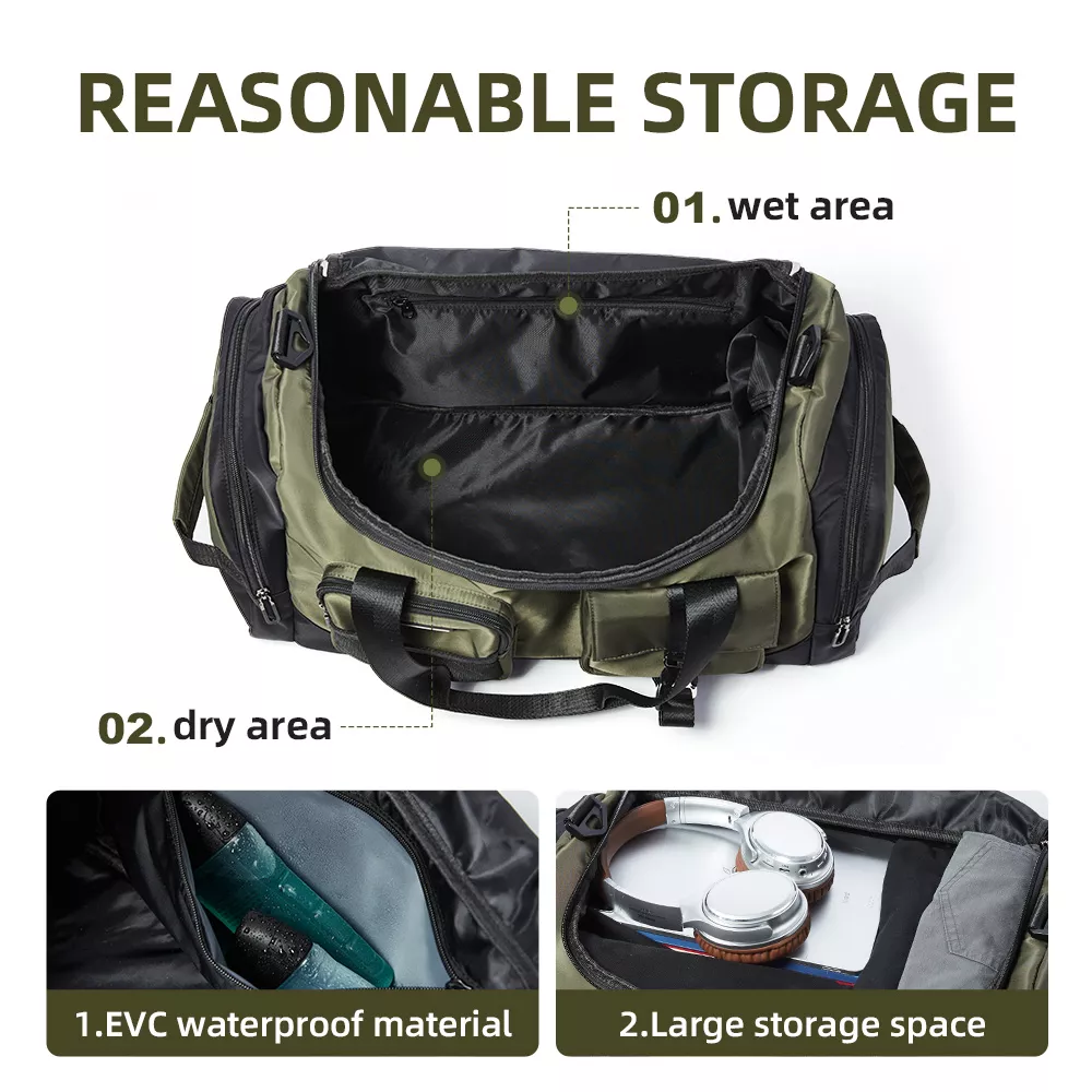 This gym and travel duffel bag is more than just a bag—it’s a solution to your packing challenges. The waterproof material ensures your items stay dry no matter the conditions. The wet compartment is perfect for gym-goers who need a place for sweaty clothes, while the separate shoe storage ensures hygiene and organization. Plus, its versatile design makes it ideal for everything from work commutes to overnight stays.