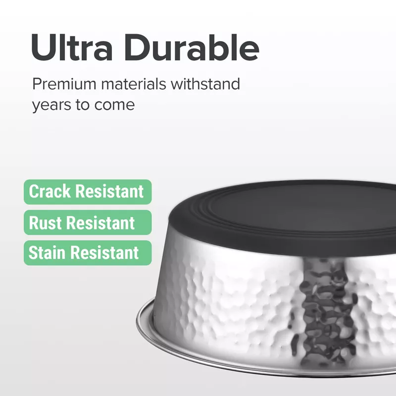 - Non-Slip Rubber Bottom – Say goodbye to noisy, sliding bowls! The silicone-bonded base keeps the bowl firmly in place on any surface, from hardwood floors to carpets and even concrete.