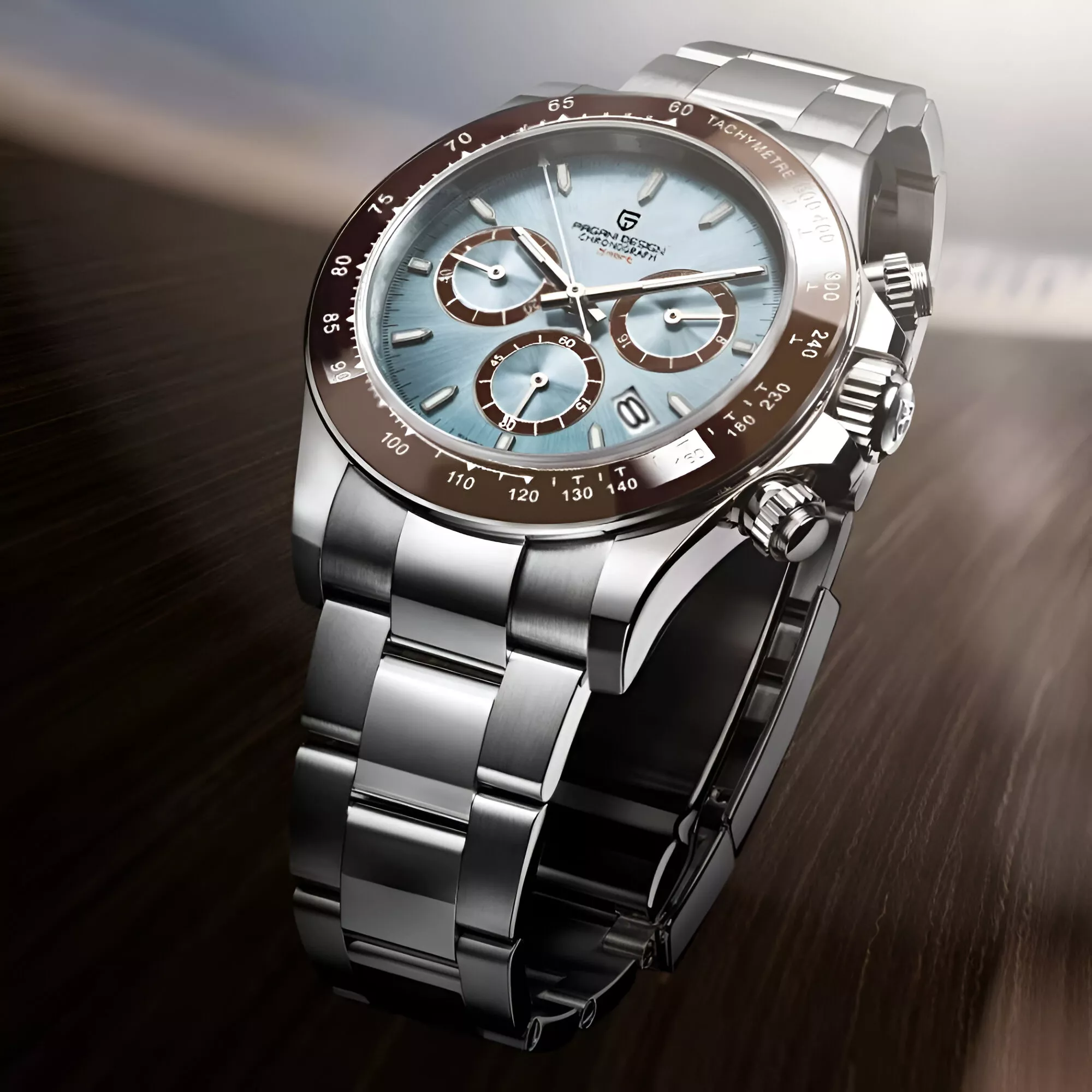 This luxury men’s sports watch stands out with its combination of advanced features and timeless design. Whether you’re at the gym, on a business trip, or out for a night on the town, it seamlessly transitions from one setting to the next. The sleek stainless steel band and stylish chronograph dial make a bold statement, while the waterproof and shock-resistant features ensure you can wear it confidently throughout the day. Plus, its luminous hands and clear dial make reading the time a breeze, no matter the lighting conditions.