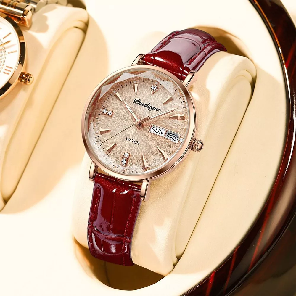 This Luxury Fashion Ladies Watch is more than a timepiece; it’s a statement of sophistication and reliability. The luminous hands and date display offer both style and practicality, while the waterproof build ensures it’s ready for any adventure. Whether you’re dressing up for a formal event or adding a touch of elegance to your everyday look, this watch complements any attire, making it a thoughtful choice for women who appreciate fine details.