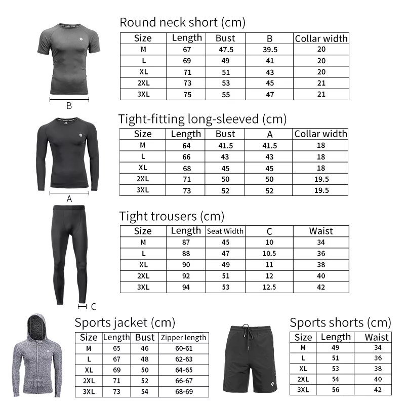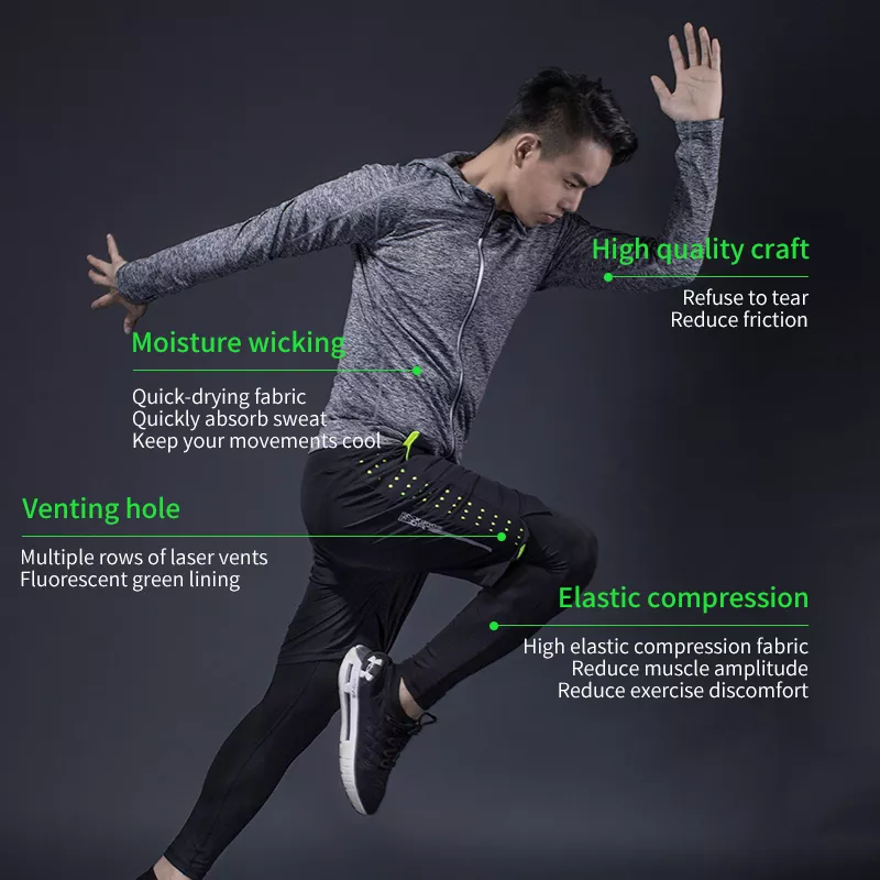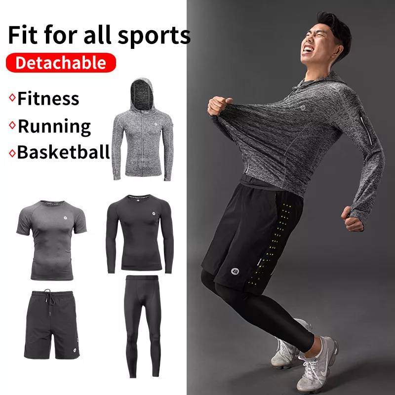 Ready to take your fitness routine to the next level? With this men’s 5-piece compression sport suit, you’ll have everything you need to stay dry, comfortable, and at your best during every workout. Whether it’s weight training, running, or yoga, this suit helps you push your limits and perform at your peak. Get ready to experience the perfect blend of comfort, style, and performance. Add this sport suit to your collection today and move with confidence.