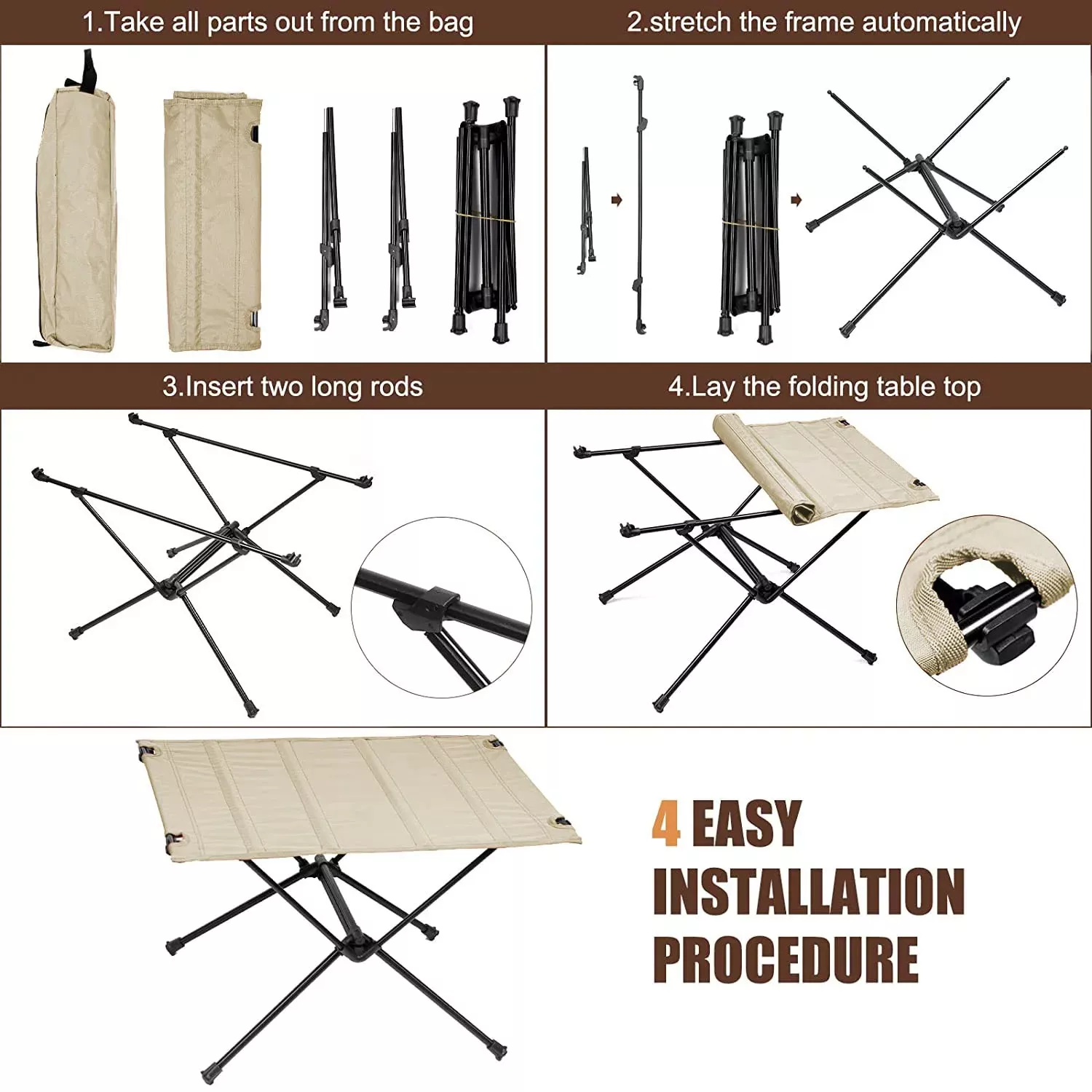 - Sturdy and Durable: Crafted from premium aluminum alloy, this table holds up to various outdoor conditions without bending or breaking. It’s strong enough to support a meal for four or your camping essentials.