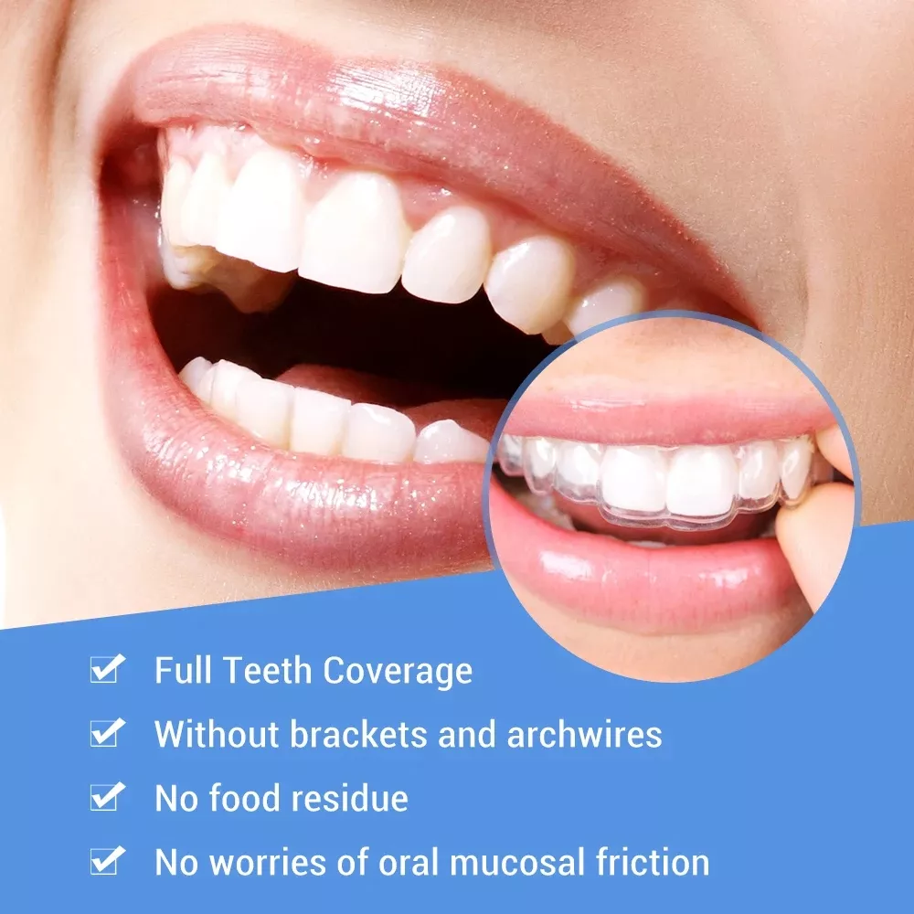 - Comfortable and Safe: Designed to provide full coverage of your teeth without causing irritation or discomfort, the braces eliminate the need for brackets or wires, preventing food residues and oral mucosa rubbing.